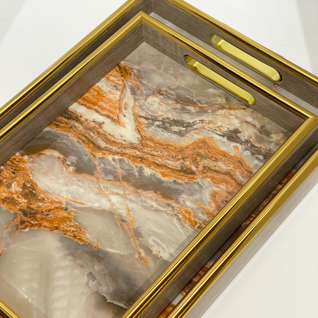Amber Mirage β 2pc Acrylic Tray Set Description:Bring effortless elegance to your space with the...