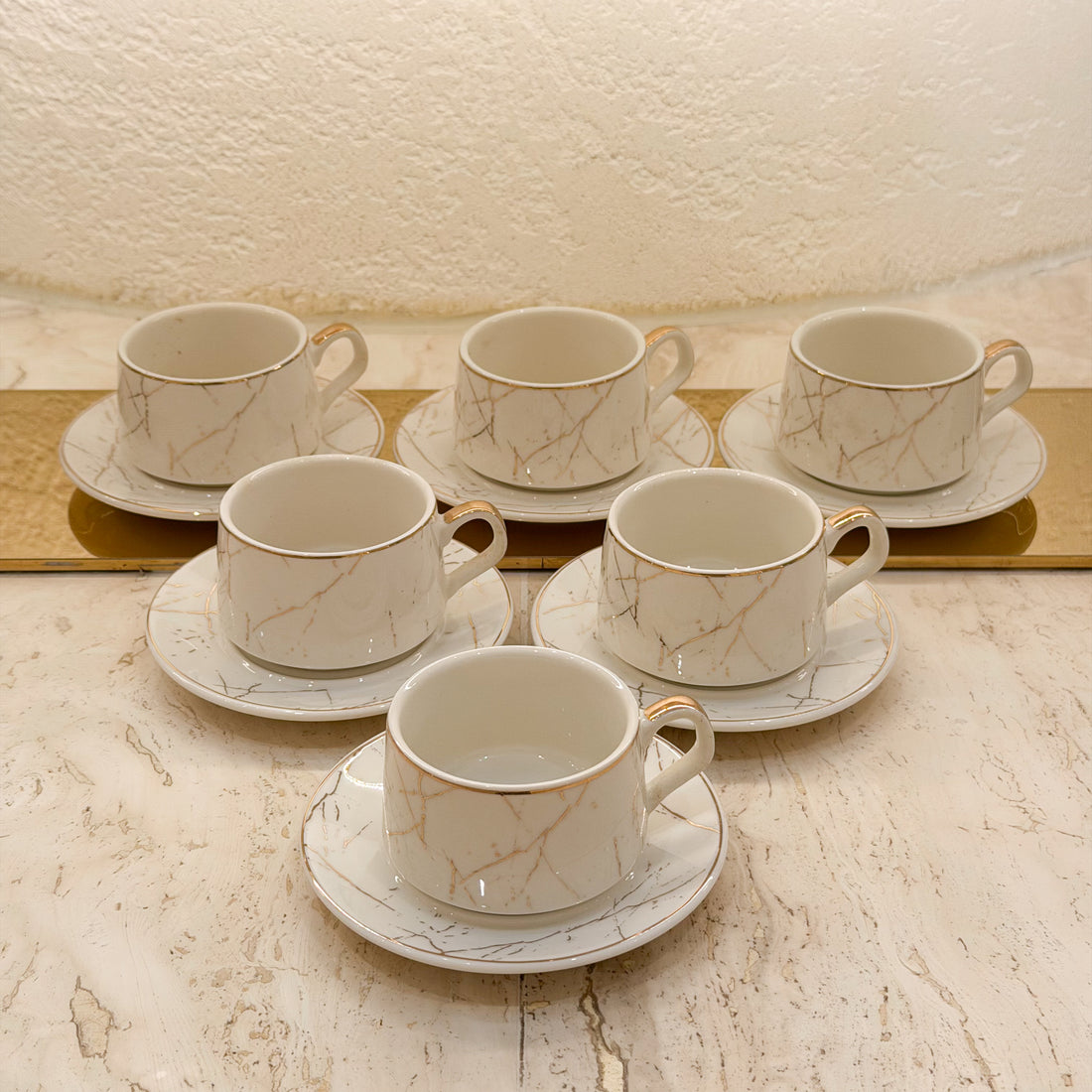 Marble Vein Gold Turkish Coffee Set Includes: 6 Cups & 6 Saucers Material: Premium...