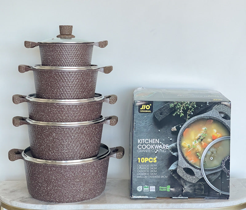 JIO DiamondEdge™ 10-Piece Textured Granite Cookware Set (insulated handle)
