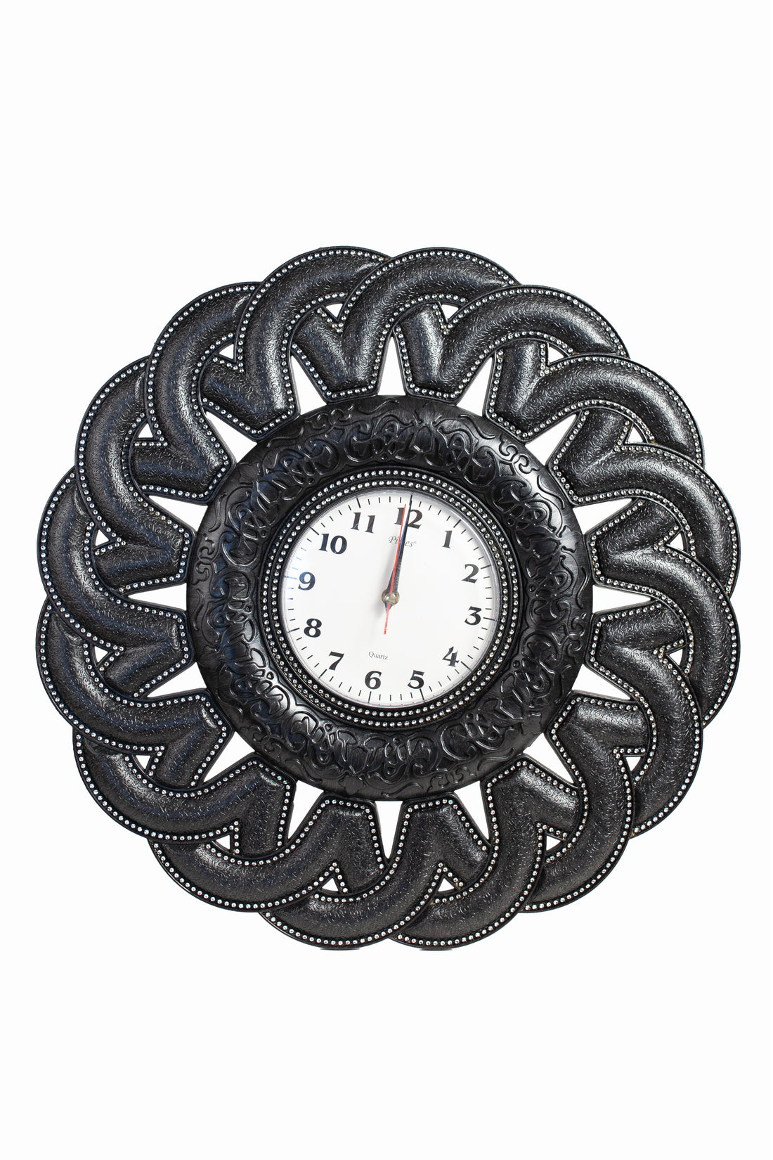 Waves of Time β Embossed Black Wall Clock Description: Bring elegance and flow into your...