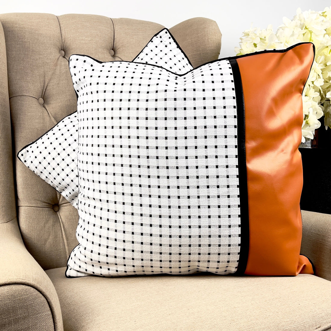 Kanz Modern Grid Cushion β White, Black & Orange Panel (55x55cm) with Synthetic Feather Insert...
