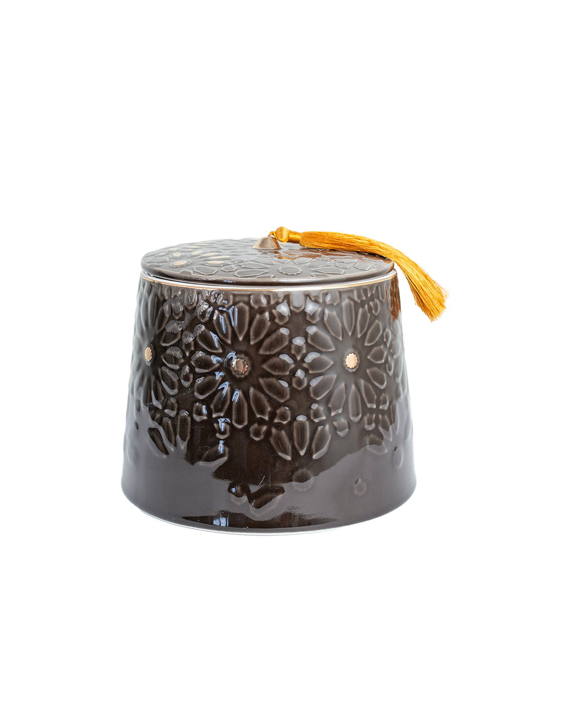 Ikram Embossed Ceramic Storage Jar β Black with Tassel Lid Product Description: Add depth and...