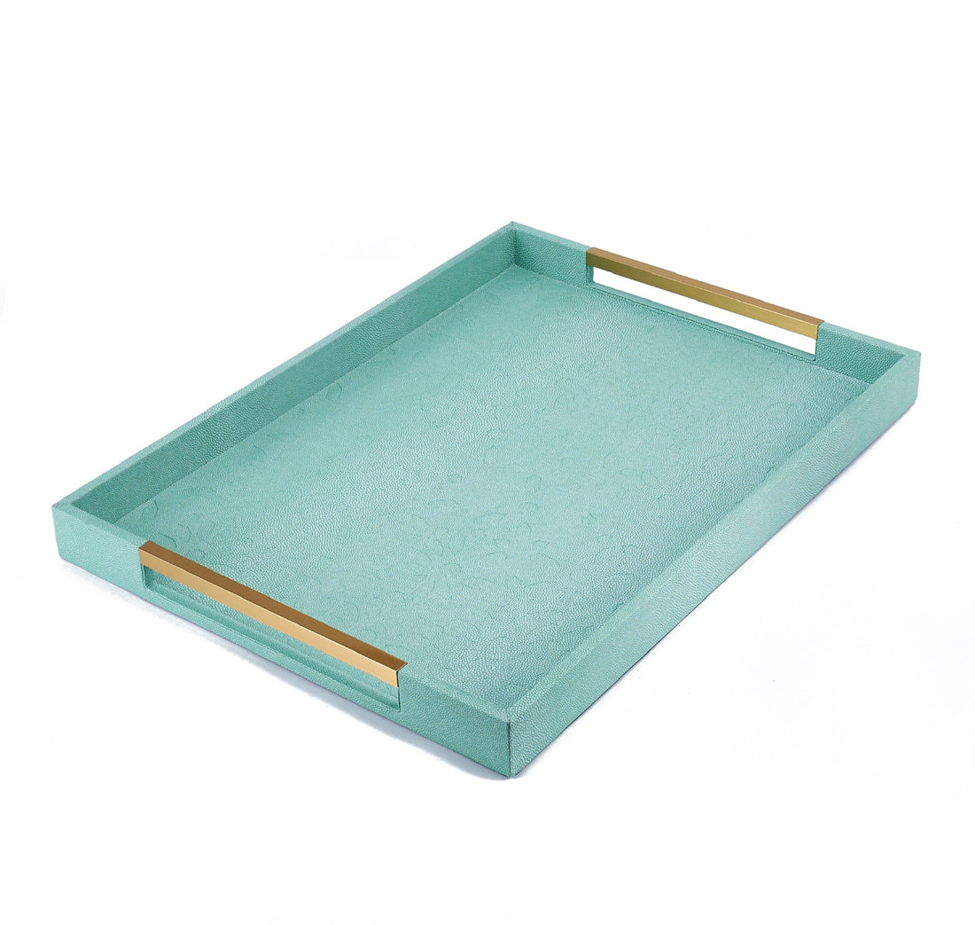 Luxe Leather Trayβ β Large teal & Gold Serving Tray