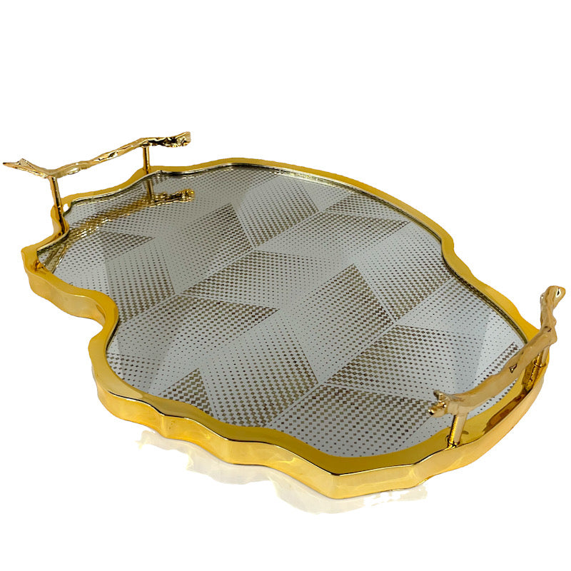 KANZ Gold-Inlay Tray β Geometric Mesh Design Description: Β Add bold elegance to your home with...