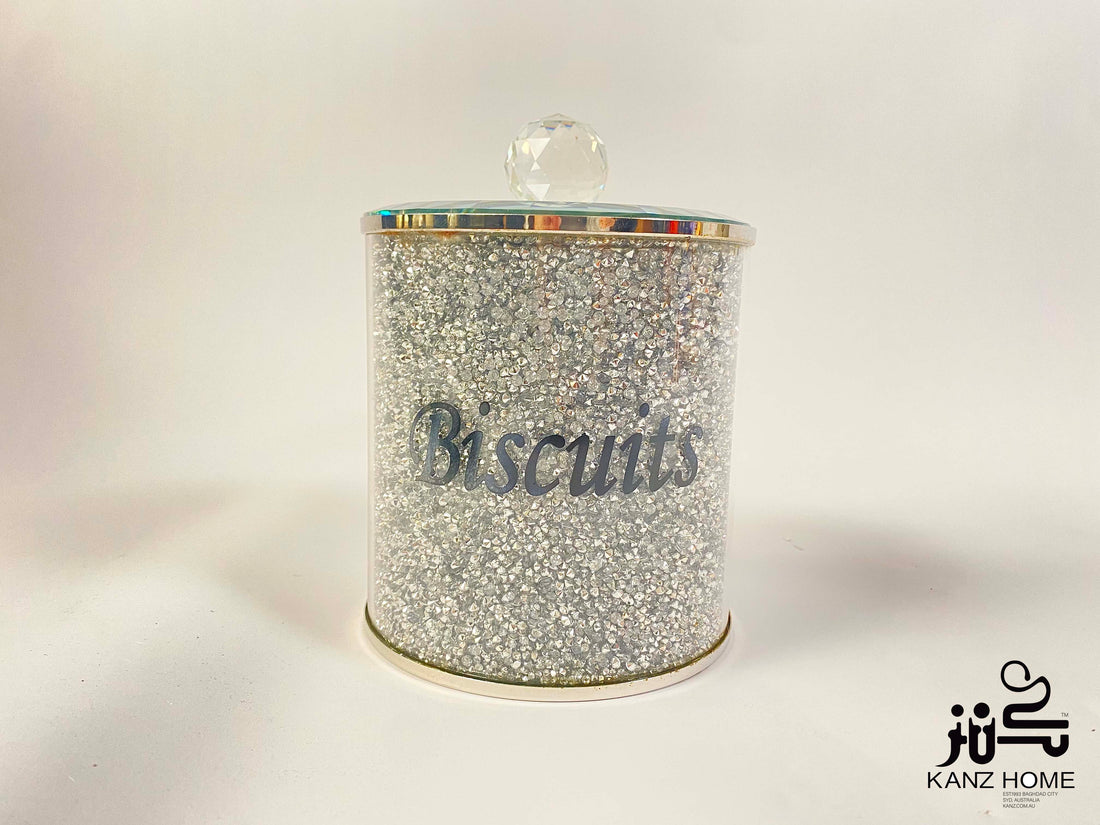 Crystal-Inspired Biscuit Jar with Glass Lid & Silver Glitter Body