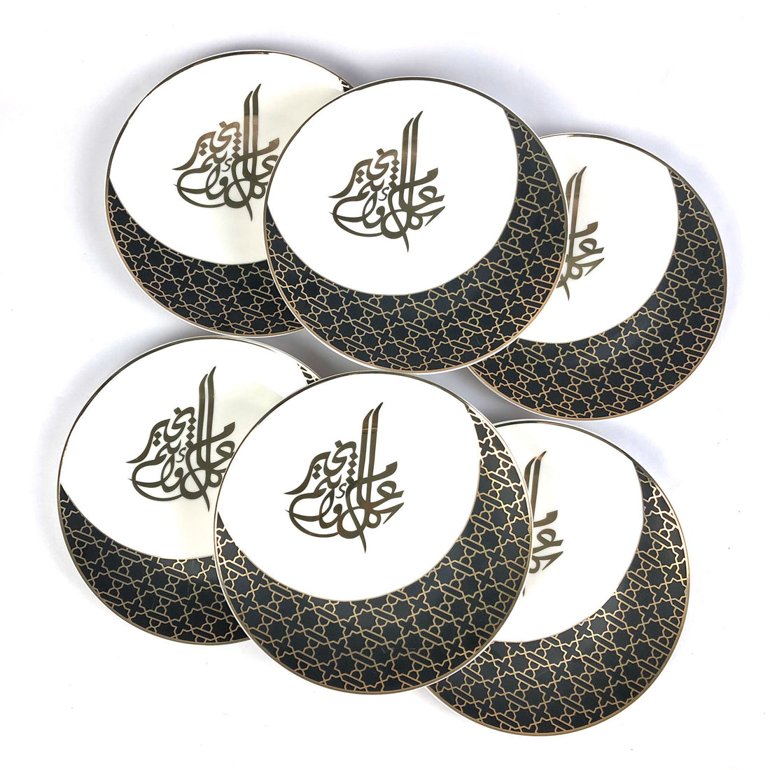 Luxury Ramadan Dessert Plate Set β Elegant Gold & BlackΒ Design (Set of 6) Enhance your...