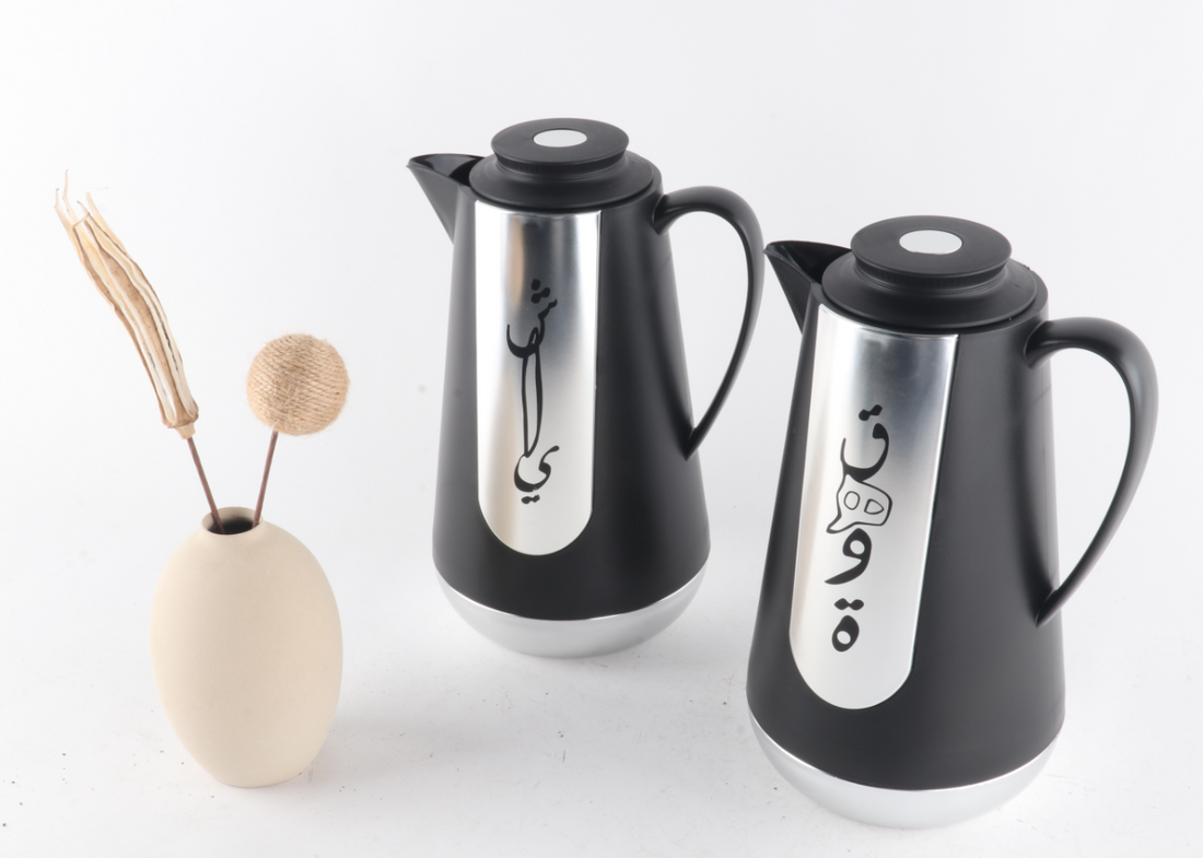 Shai & Qahwa β Arabic Calligraphy Vacuum Flask Set (1L Black&Silver)