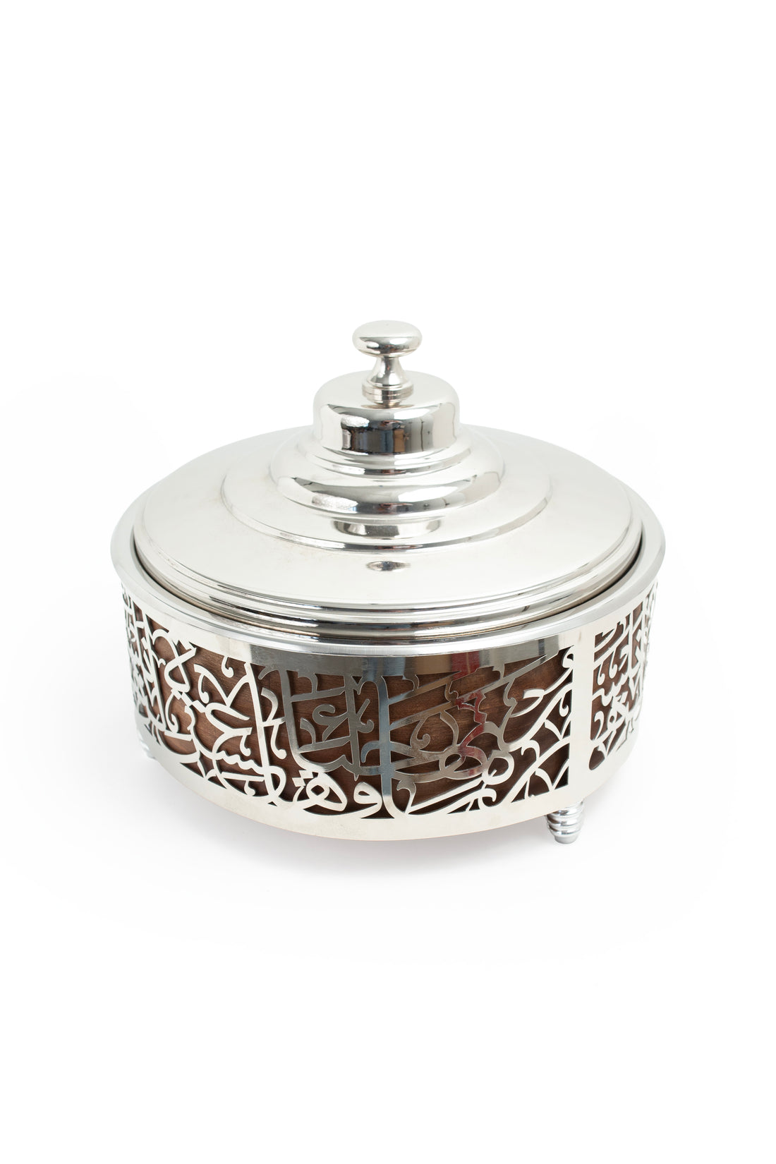 Stainless Steel & Wood Food Warmer with Arabic Cutout Design - 2500 mL