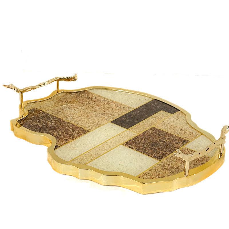 KANZ Gold-Inlay Decorative Tray β Modern Stone Mosaic