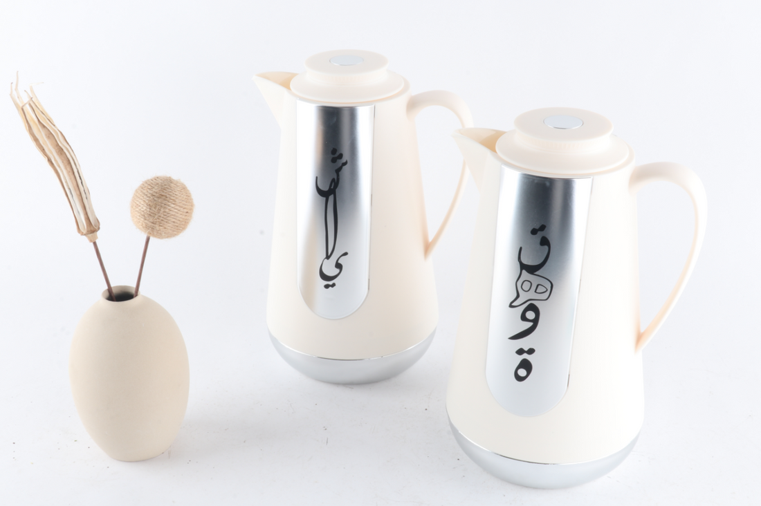 Shai & Qahwa β Arabic Calligraphy Vacuum Flask Set (1L White&Silver)