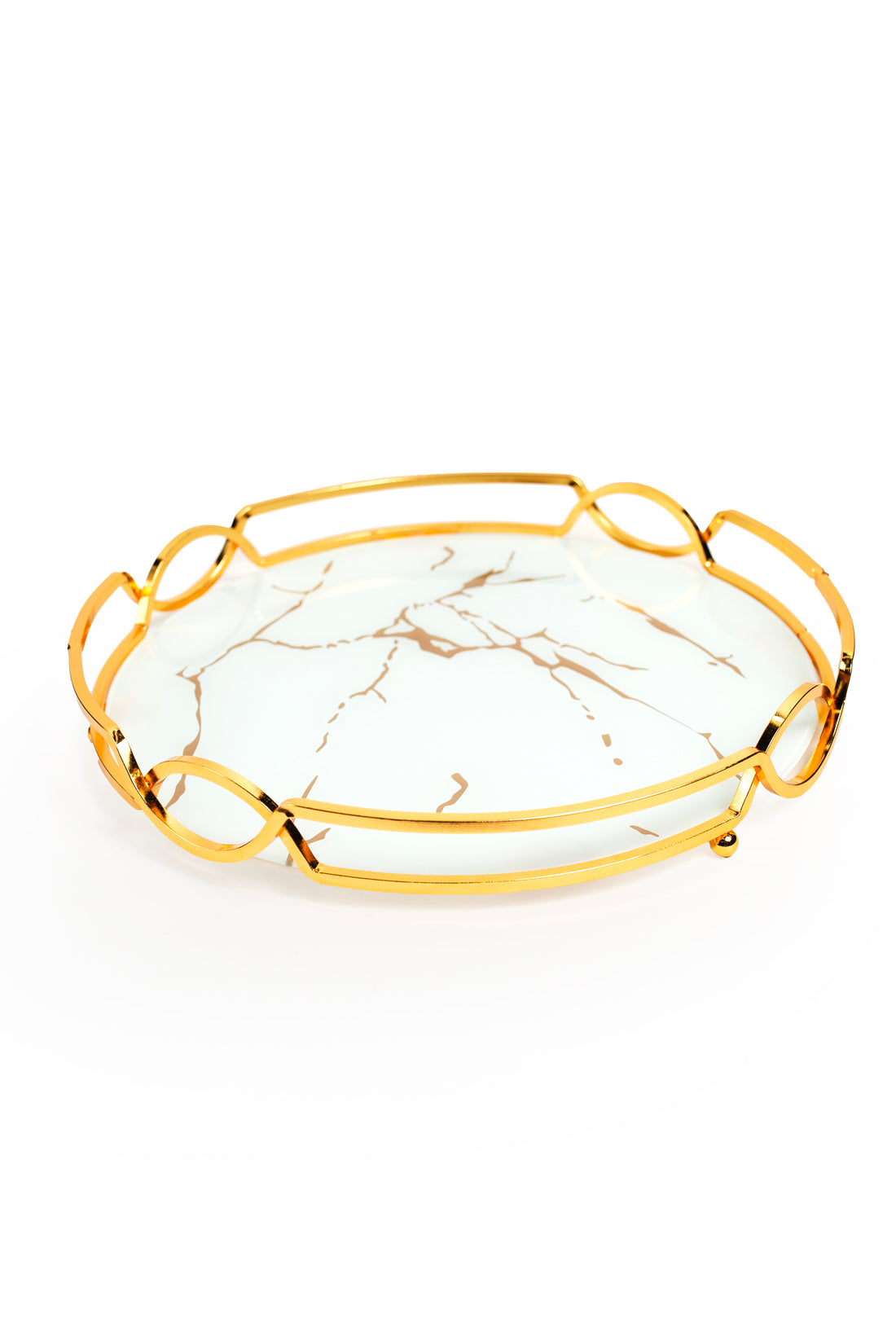 KANZ Round Marble Tray β White & Gold Rim Design Description: Elevate your tabletop styling...