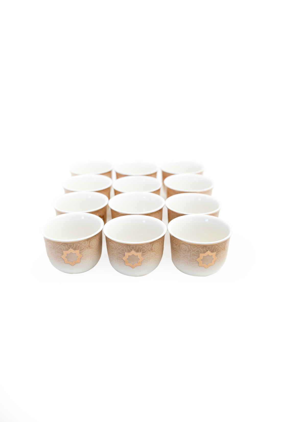 12-Piece Arabic Coffee Cup Set β Beige Ombre with Geometric Motif
