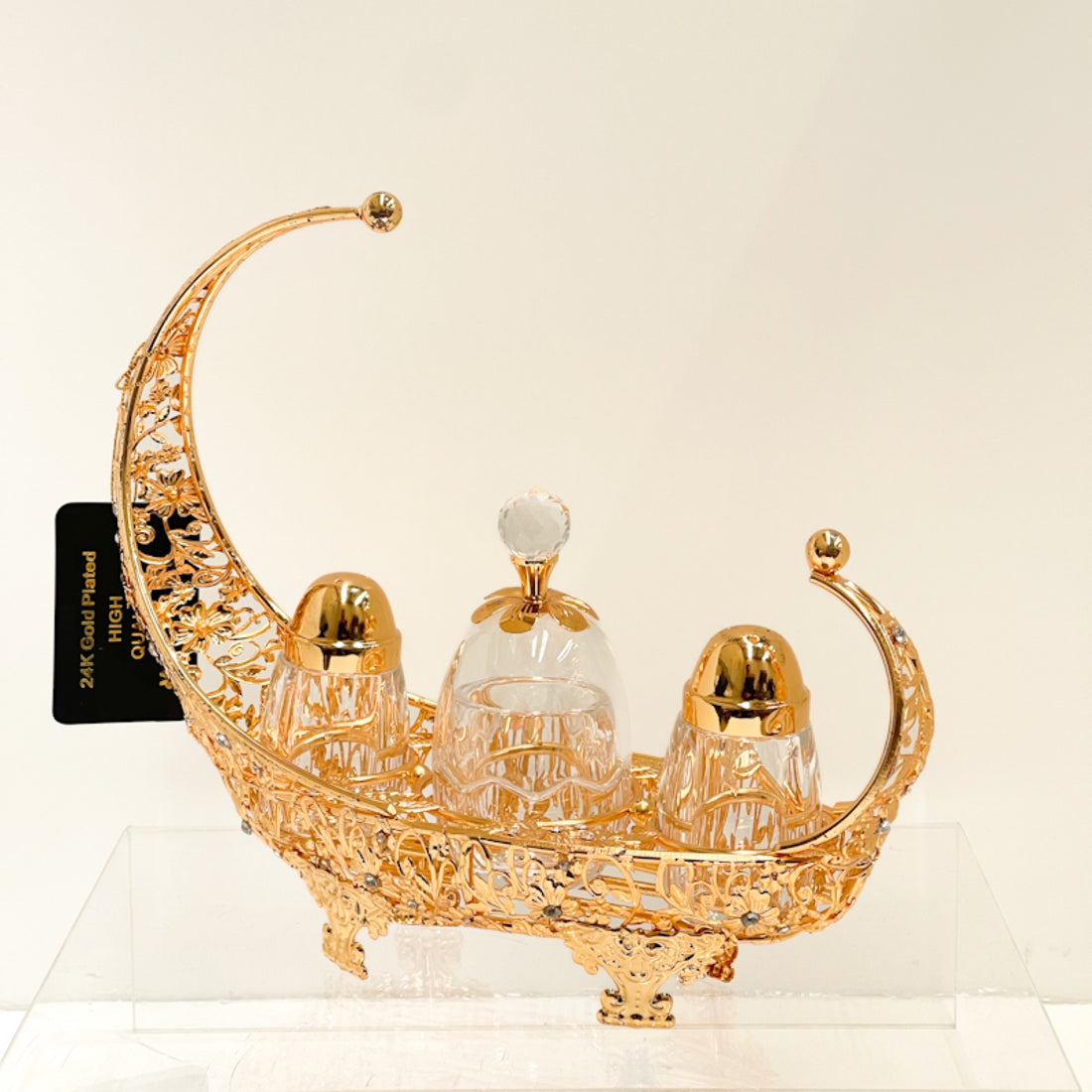 Lunar Elegance 24K Gold-Plated Salt, Pepper & Egg Holder β Luxury Ramadan Serving Set
