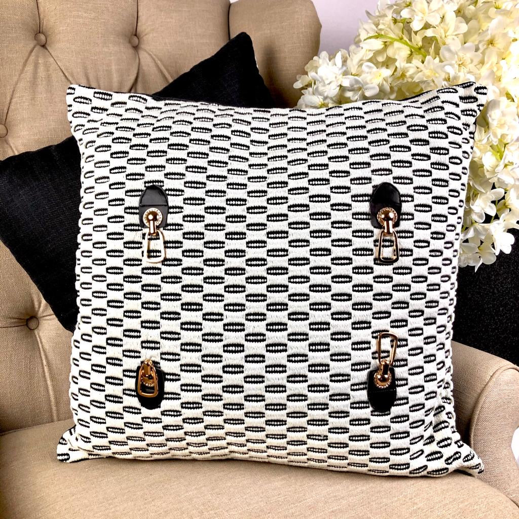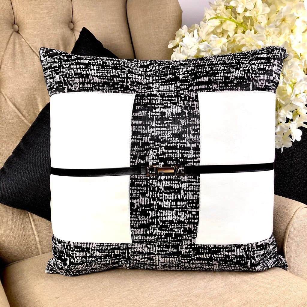 Kanz Monochrome Luxe Cushion β Black & White with Gold Buckle (55x55cm) with Synthetic Feather Insert