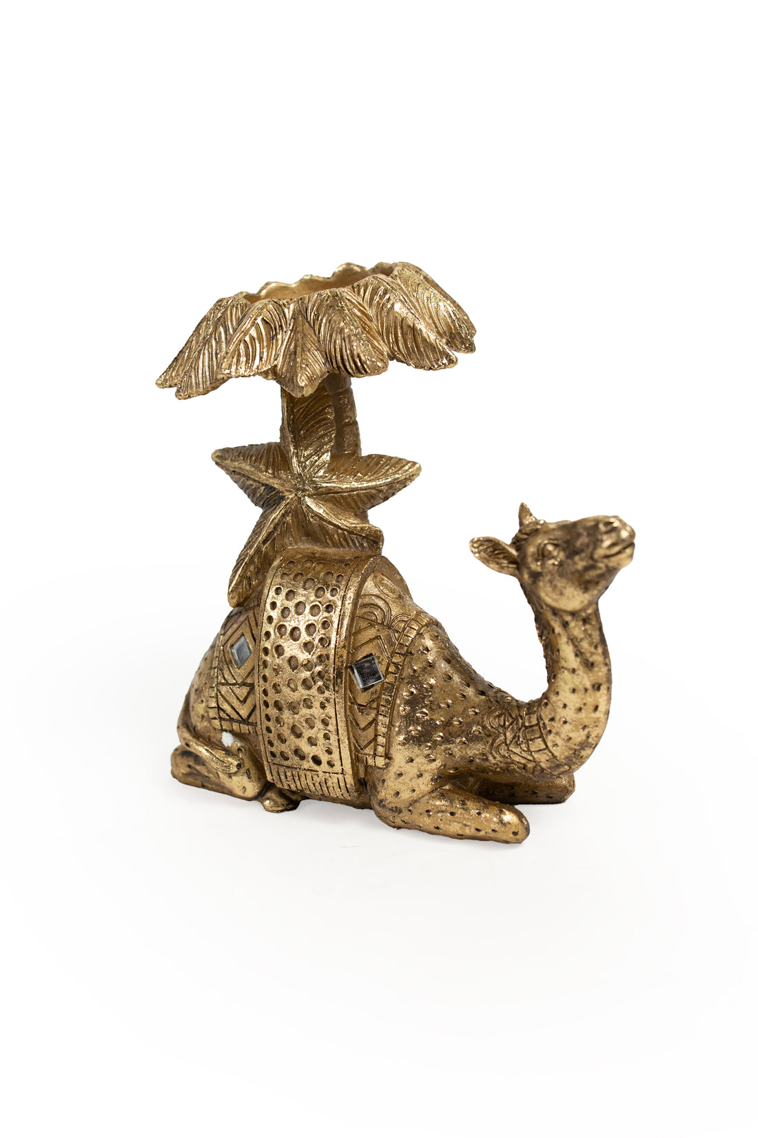 Golden Oasis Camel Décor Piece Description: Bring a touch of desert charm to your space...