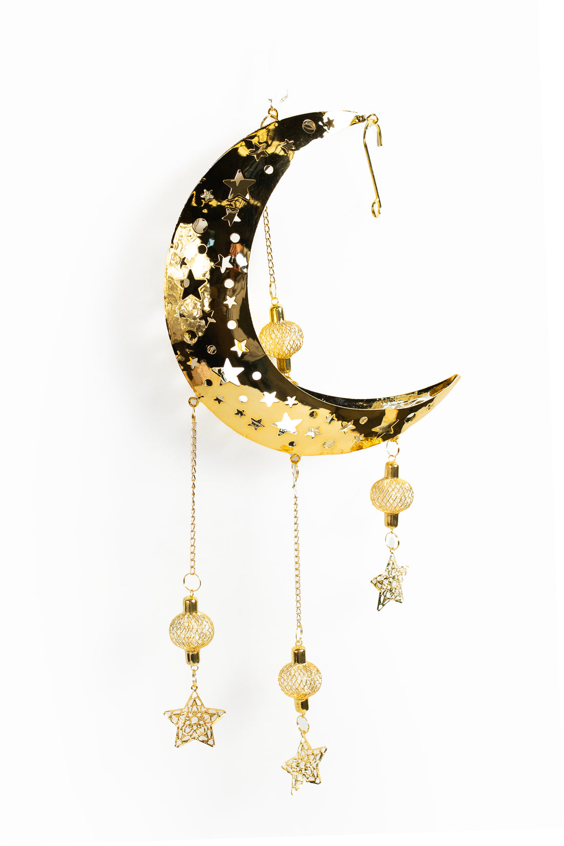 Illuminate your celebrations with this elegant golden Ramadan lantern, beautifully designed with a crescent moon...