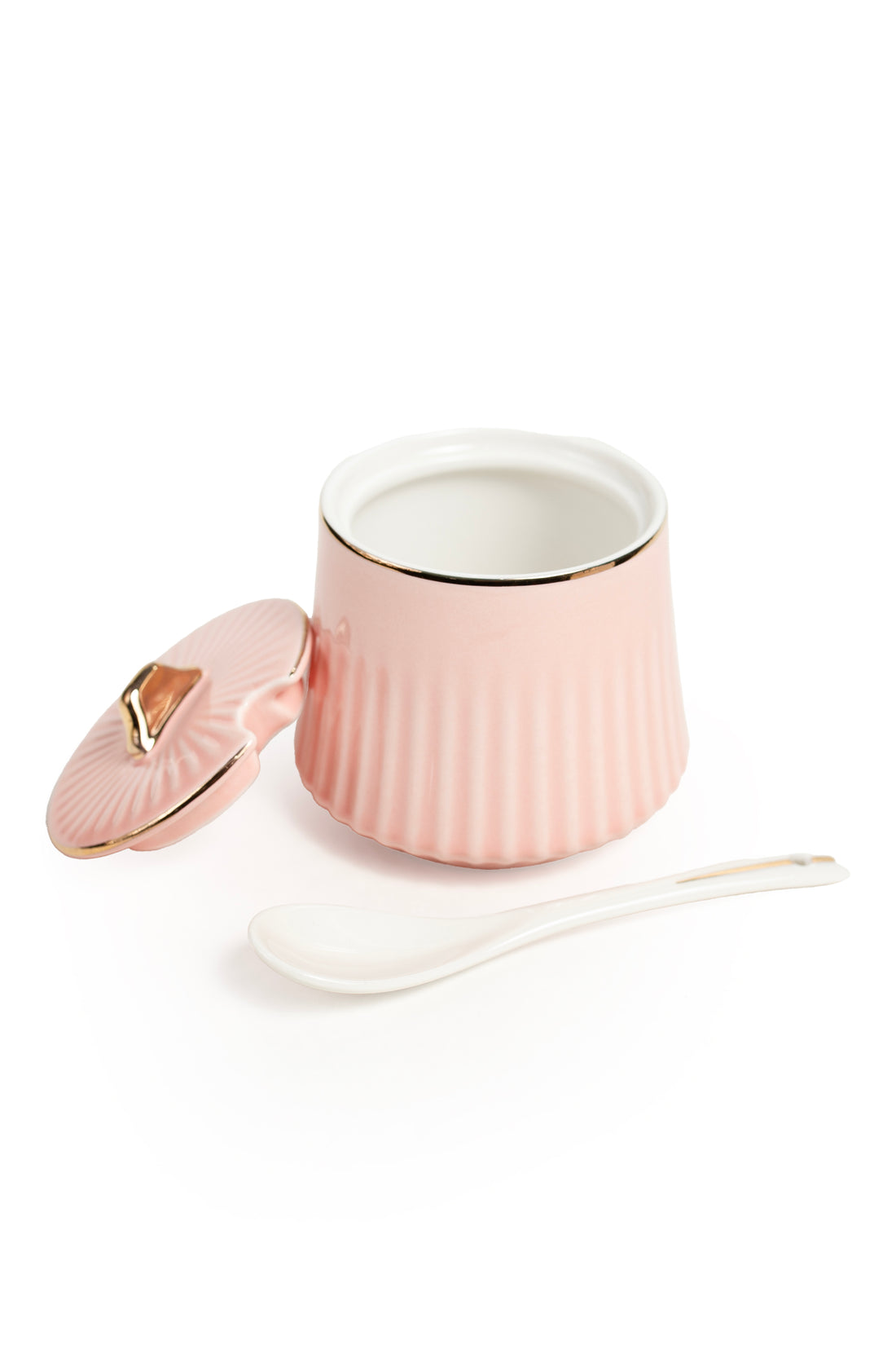 Add a touch of elegance to your table with this blush pink ceramic sugar pot,...