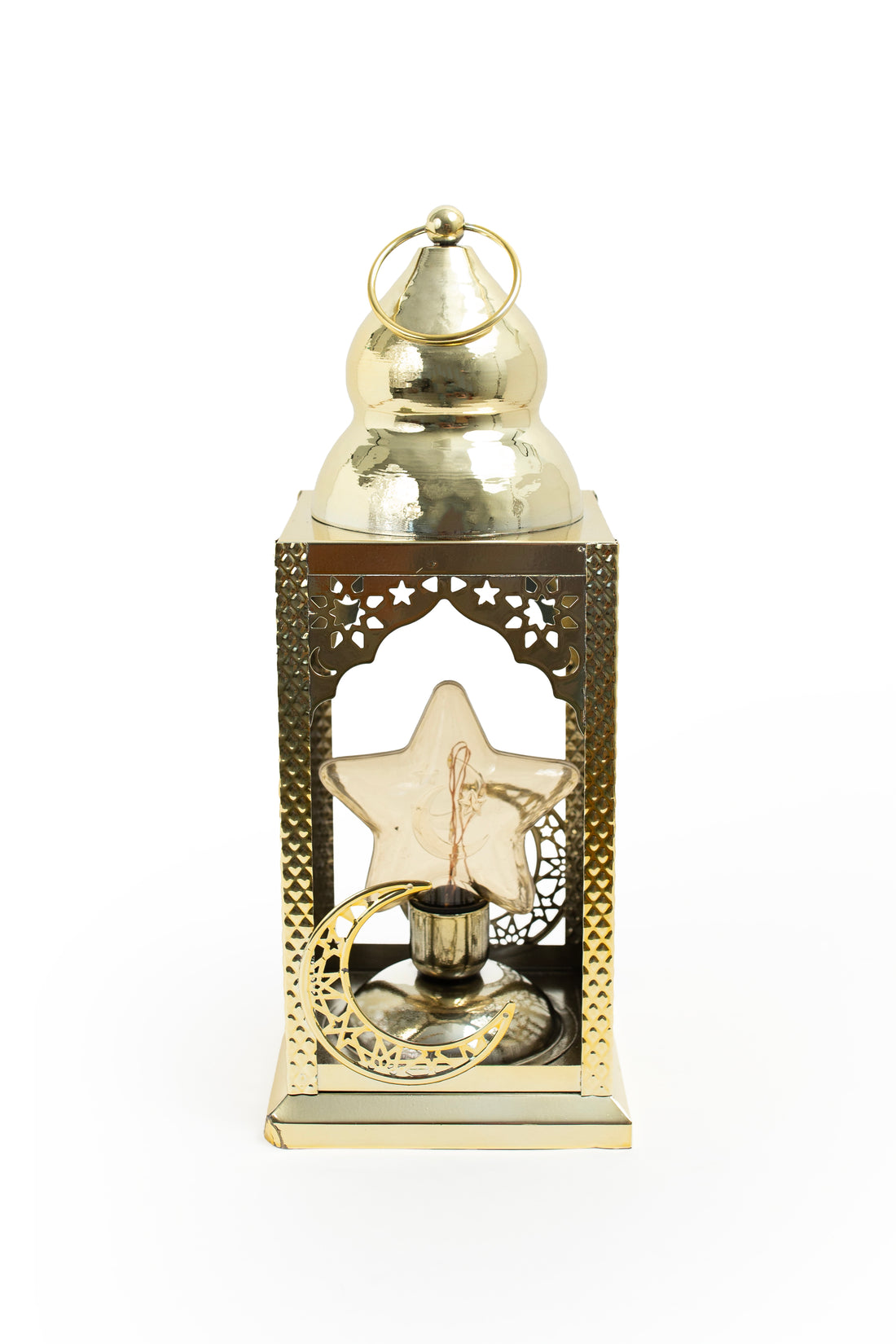 Gold Crescent & Star Lantern with Islamic Geometric Pattern