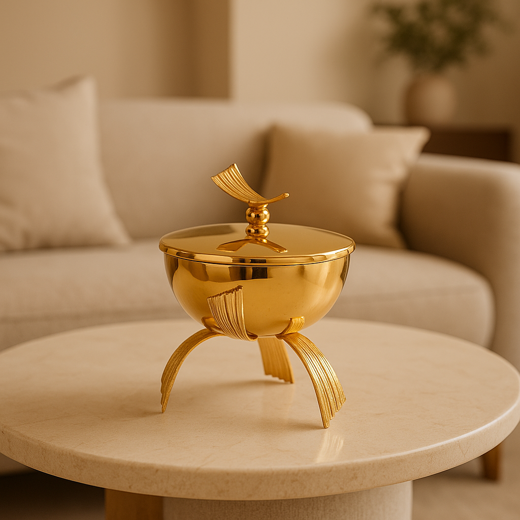 Gold Decorative Pedestal Bowl with Textured Leaf Legs – Modern Luxe Accent