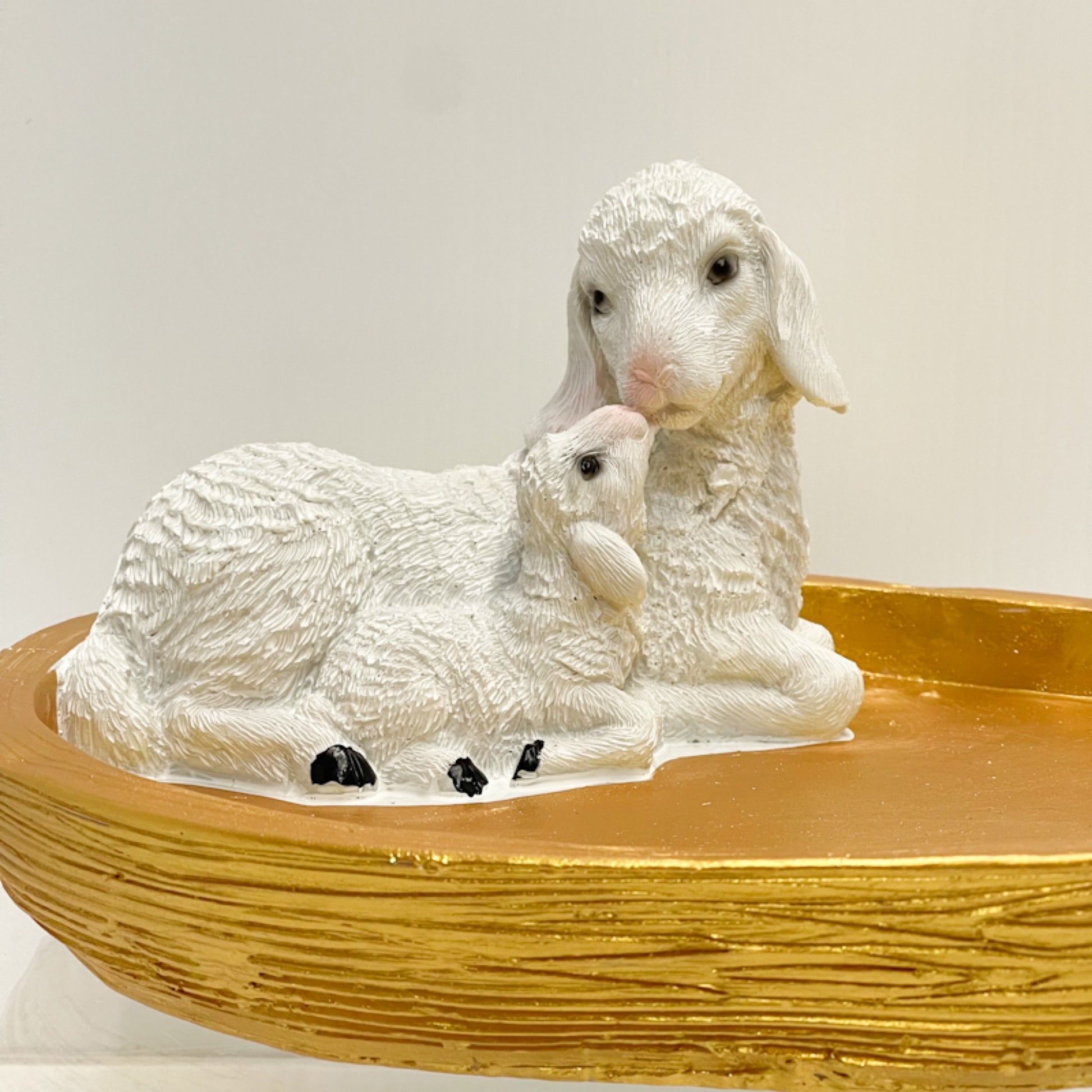 Celebrate the spirit of Ramadan with this exquisite resin-made tray, perfect for serving dates, sweets, and treats during Iftar and Suhoor. Designed with a heartfelt sculpture of a mother and baby lamb, this tray symbolizes warmth, tradition, and togetherness. The gold-toned base adds a touch of elegance, making it a stunning addition to your Ramadan gatherings.