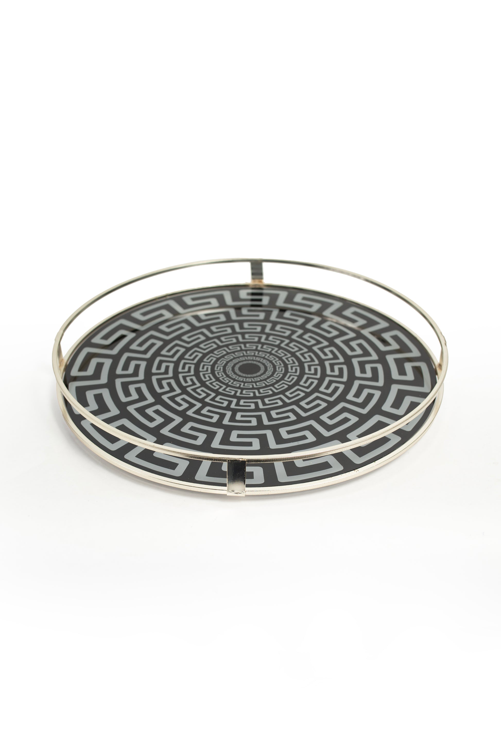 Round Black & Silver Geometric Serving Tray