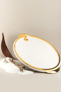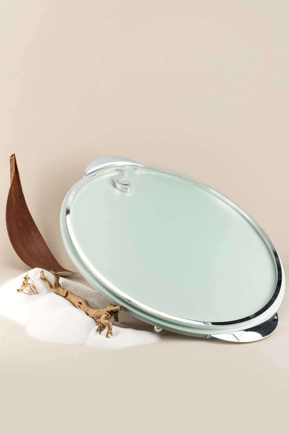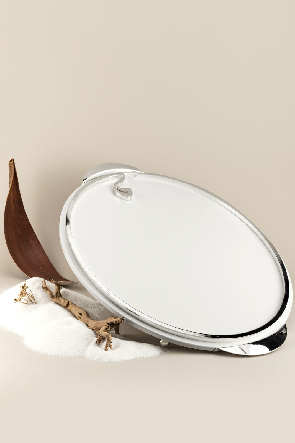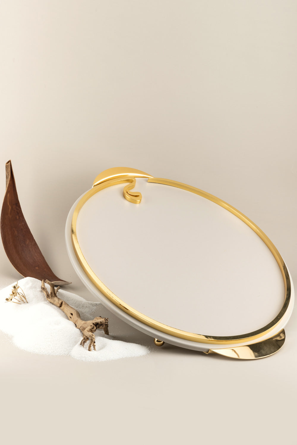 The sleek, curved metal frame provides a modern yet timeless aesthetic, while the leather surfaceensures a sophisticated and refined finish. Ideal for serving coffee, tea, desserts, or as a decorative centerpiece, this tray is perfect for Ramadan, Eid, special occasions, and everyday luxury.