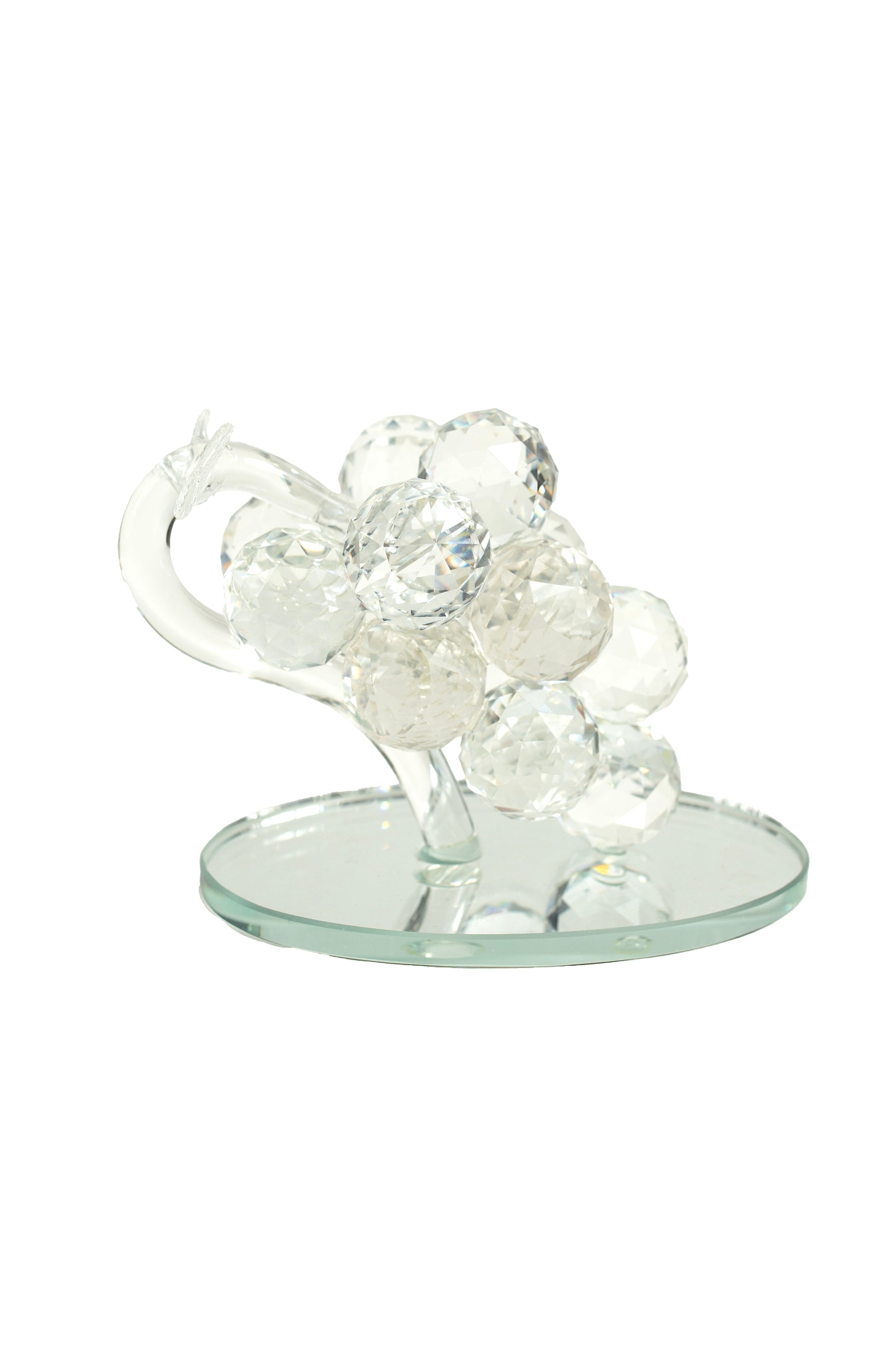 Add sparkle and elegance to your décor with this crystal grape cluster ornament. Beautifully crafted with faceted glass spheres arranged on a clear stem, it reflects light beautifully, creating a shimmering display. Resting on a sleek glass base, this piece is perfect for tabletops, shelves, or as a unique gift.